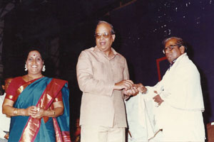 It is to be mentioned with great pride that Smt.Revathi Muthuswamy has displayed an outstanding dance serial "Pannum Bharathamum" running upto 111 episodes, in Doordharshan Pothigai T.V, all of them based on elaborate research in Tamil literature. A recipient of several awards including the Kalaimamani Award of Tamilnadu Government, Smt.Revathi was a Senate Member of Bharathidasan University and a member of the Faculty of Fine Arts, Annamalai University.